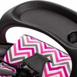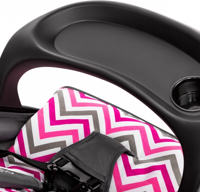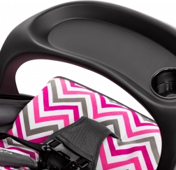 Fünfpunktgurte mit weichen Polstern und der vordere Schutzbügel mit Tablett erhöhen Sicherheit und Komfort. Die Konstruktion erfüllt die Norm EN 1888, geprüft im SGS-Labor.