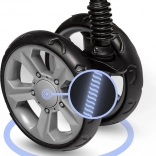 Robuste EVA-Schaumräder meistern urbane Herausforderungen. Vorderräder mit weicher Federung dämpfen Stöße und lassen sich für die Geradeausfahrt arretieren.