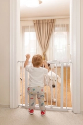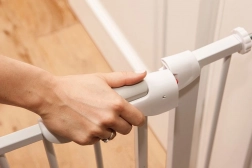 Die Sicherheitsbarriere Truus Slim LED bietet maximale Sicherheit für Kinder beim Erkunden des Hauses. Dank der einfachen Montage ohne Bohren ist sie ideal für jedes Interieur. Das automatische Verriegelungssystem und das Doppelschloss gewährleisten, dass die Barriere nicht einfach geöffnet werden kann.
