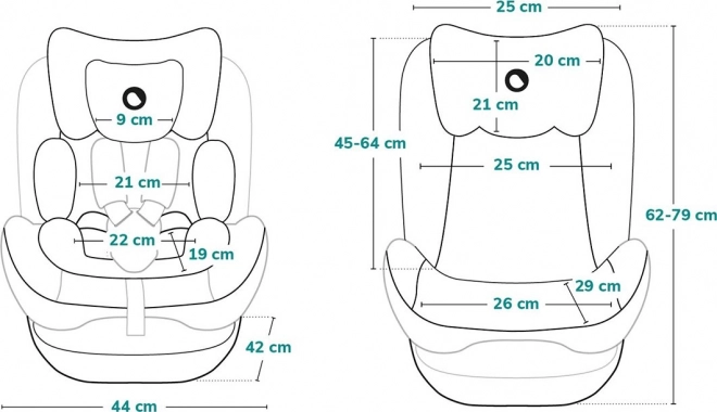 Für erhöhte Sicherheit ist der Sitz mit einem 5-Punkt-Gurt mit weichen Polstern und einem seitlichen Schutz aus PP und EPS zur effektiven Energieabsorption bei Aufprall ausgestattet. 7-stufige Einstellung der Kopfstütze und 4 Neigungspositionen gewährleisten Ergonomie und Komfort in jeder Wachstumsphase. Der abnehmbare Bezug ist leicht waschbar – so bleibt die Pflege schnell und unkompliziert.