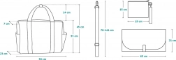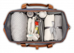 • Innen: große Reißverschlusstasche, große Klettverschlusstasche, 2 Thermotaschen mit beidseitiger Isolierung für Fläschchen, 2 innere Reißverschlusstaschen.