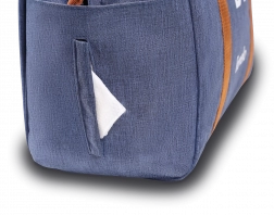 • Außen: praktische Reißverschlusstasche, 2 Seitentaschen – davon eine für Feuchttücher mit direktem Zugriff.