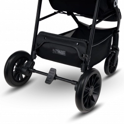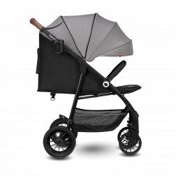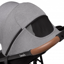 Der Kinderwagen denkt an Eltern und Details: schnelles Zusammenklappen mit Verriegelung für sicheren Transport, großer Einkaufskorb, Griff aus Eco-Leder für angenehmen Halt sowie praktisches Zubehör wie ein Moskitonetz, das in der Fußstütze versteckt ist, und ein Getränkehalter. Reflektierende Elemente erhöhen die Sichtbarkeit in der Dämmerung, der 5-Punkt-Gurt mit zwei Höhenniveaus sorgt für sicheres Anschnallen des wachsenden Kindes.