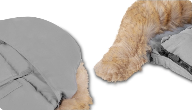 Inklusive abnehmbarer Kunstfell-Kante mit Knöpfen für variablen Stil und zusätzliche Wärme. Die antiallergische Füllung isoliert hervorragend, gleichzeitig sorgt der Fußsack für gute Luftzirkulation. Pflegeleicht – waschbar bei 30 °C.