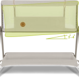 Atmungsaktive Netzseiten fördern die Luftzirkulation und den Sichtkontakt, der Bezug lässt sich leicht abnehmen und waschen – für maximale Hygiene. Mit 7 Höhenniveaus stimmen Sie das Bettchen einfach auf die Höhe Ihres Bettes ab; bei Erkältung oder Reflux kann die Matratze leicht geneigt werden – für mehr Komfort.