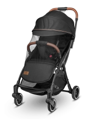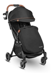 Der Kinderwagen lässt sich leicht auf kleine Maße zusammenklappen und in der mitgelieferten Tasche verstauen. Ausgestattet mit Fußsack, Moskitonetz und Getränkehalter.