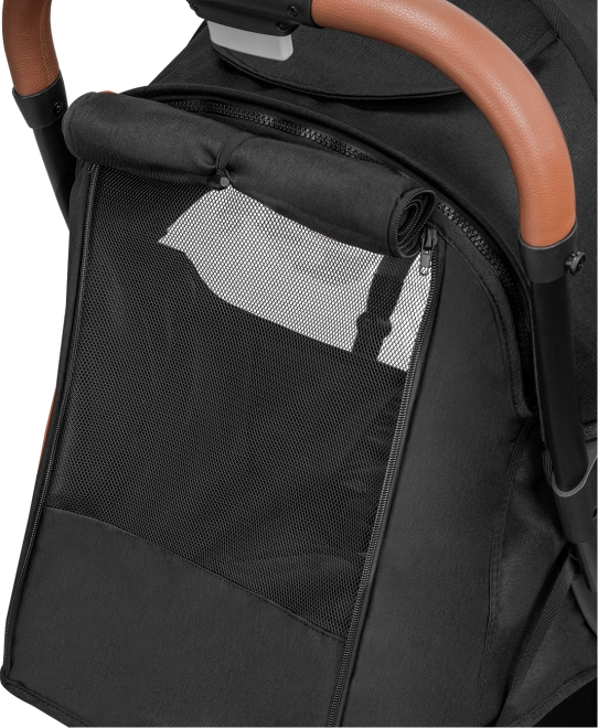 Lieferumfang: Fußsack mit äußerer Kunstlederseite, Moskitonetz, Getränkehalter und praktische Tasche für den Transport des zusammengeklappten Kinderwagens.