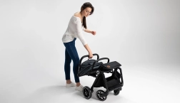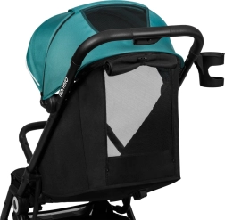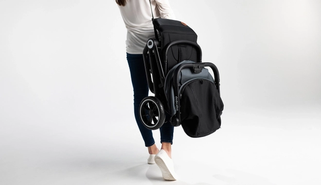Das XXL-Verdeck mit wasserabweisender Beschichtung und UPF50+ Filter bietet zuverlässigen Schutz vor Sonne und Regen. Für Sicherheit sorgen 5-Punkt-Gurte und reflektierende Elemente für bessere Sichtbarkeit. Auf Knopfdruck klappt der Kinderwagen automatisch zu einem kompakten Format zusammen – der Transport gelingt leicht mit dem speziellen Tragegurt und der Schutzhülle.