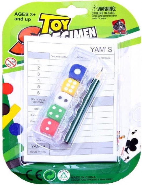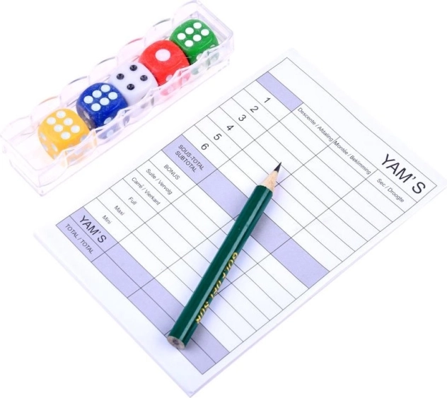 Die Packung enthält 5 bunte Würfel mit einem Notizblock zum Aufschreiben der Punkte und einen Stift. Würfelgröße: 1,5 × 1,5 × 1,5 cm. Beliebtes Spiel für Kinder und Erwachsene. Ziel des klassischen Würfelspiels ist es, die höchste Punktzahl zu erreichen. Set enthält: