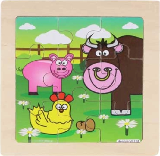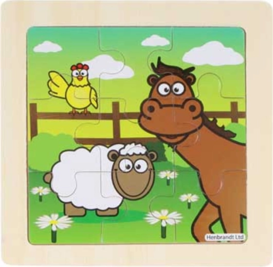Dieses Holzpuzzle mit Traktormotiv ist das ideale erste Puzzle für kleine Kinder. Die Teile werden in eine Grundplatte mit gefrästem Rand eingesetzt, die die richtige Platzierung erleichtert und die Handhabung vereinfacht. Das zusammengesetzte Bild hat ein kompaktes Format von ca. 9 × 9 cm und passt so in den Rucksack – ideal auch für unterwegs.