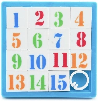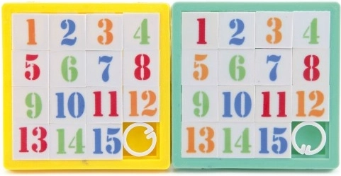 Beliebtes Logikspiel für unterwegs und zu Hause. Quadratische Zahlenplättchen liegen in einem stabilen Rahmen und lassen sich dank Rillen leicht nach oben, unten, links und rechts schieben. Ziel ist es, die Zahlen von 1 bis 15 zu ordnen – die ideale Herausforderung für Kinder und Erwachsene.