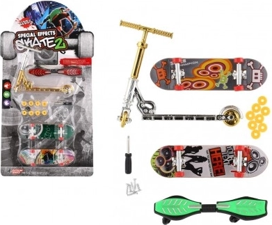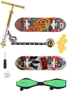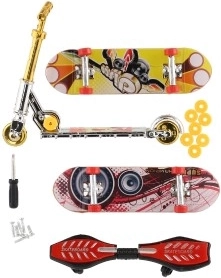Das Set enthält 2 Mini-Skateboards, ein Waveboard und einen Finger-Scooter – die ideale Mischung, um neue Tricks zu lernen und Styles zu wechseln.