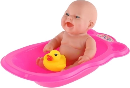Die rosa Kunststoffwanne ist leicht, stabil und bereit für tägliches Spielen am Waschbecken oder in der Badewanne.