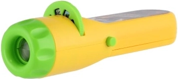 Leichte Kunststoff-Taschenlampe mit unkompliziertem Einlegen der Scheiben und sanftem Drehen für einen fließenden Bildwechsel.