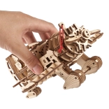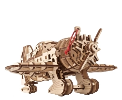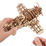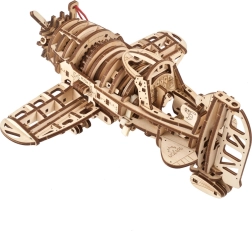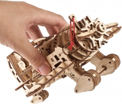 Das Modell bietet zwei Verhaltensmodi – Vorflugkontrolle mit Klappen- und Ruderbewegungen und dann die Möglichkeit zum Rollen, bei dem es mit einer Aufladung bis zu 2,5 Meter zurücklegt. Das verstellbare hintere Rad ermöglicht es, die Fahrtrichtung zu steuern. Im Inneren eröffnet sich Kindern und Erwachsenen die Welt der faszinierenden Bewegung der Kolben des Sternmotors.