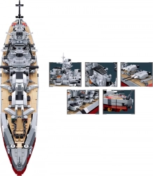 Komplexe Aufbauten, Geschütztürme und Antennen aus 1849 Teilen erzeugen das authentische Erscheinungsbild des legendären Schlachtschiffs.