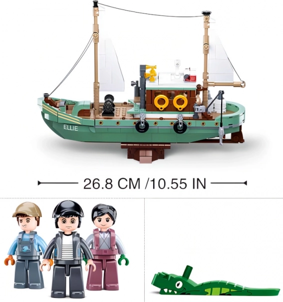 Der Bausatz wird mit drei Figuren, einer gedruckten Anleitung und Aufklebern zur Personalisierung Ihres Bootes geliefert. Das zusammengebaute Boot Ellie misst beeindruckende 27 cm und ist bereit für jedes Abenteuer. Dank der hohen Qualität des ABS-Kunststoffs sind die Bausätze langlebig und robust. Sie sind auch mit anderen Marken wie LEGO, Mega Bloks und mehr kompatibel.