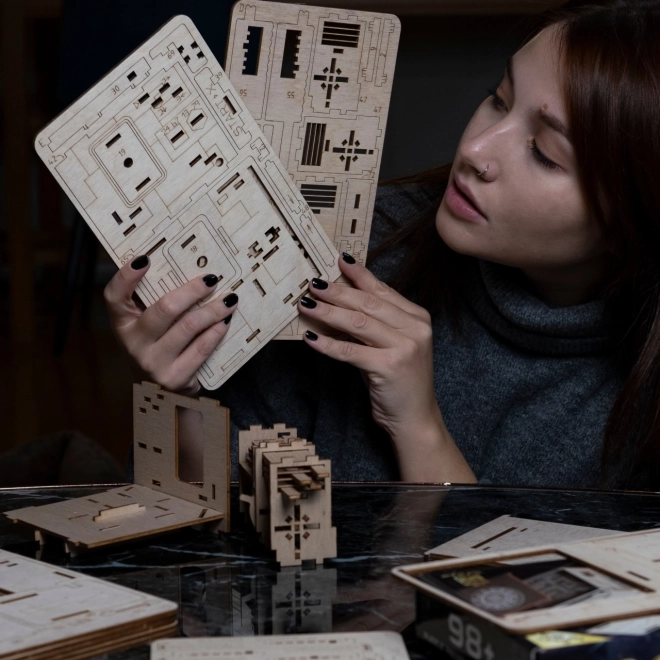 Bauen und lösen Sie dieses interaktive Modell aus Birkenholz, das Kreativität mit geistiger Herausforderung verbindet.