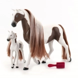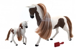 Dieses Set bietet Kindern die Möglichkeit, die Schönheit und Nähe der Beziehung zwischen Fohlen und ihrer Mutter zu entdecken. Das Fohlen gibt der Stute liebevoll ein Küsschen, immer wenn es sich beugt. Das Set enthält: