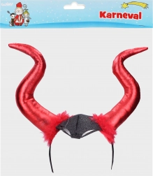 Rot-schwarze teuflische Hörner, die an einem Haarreif befestigt sind, sorgen dafür, dass du auf jedem Karneval im Mittelpunkt stehst. Design ist von teuflischen Themen inspiriert und passt perfekt zum Kostüm.