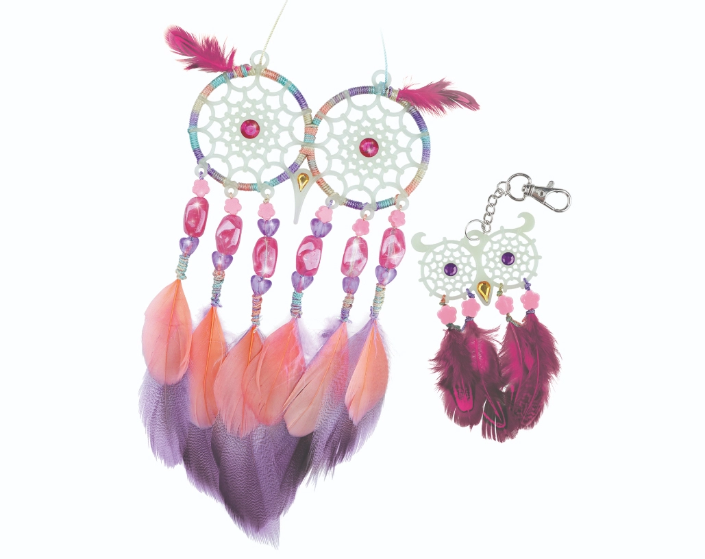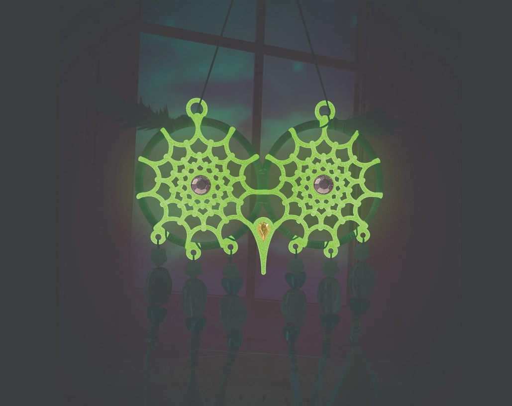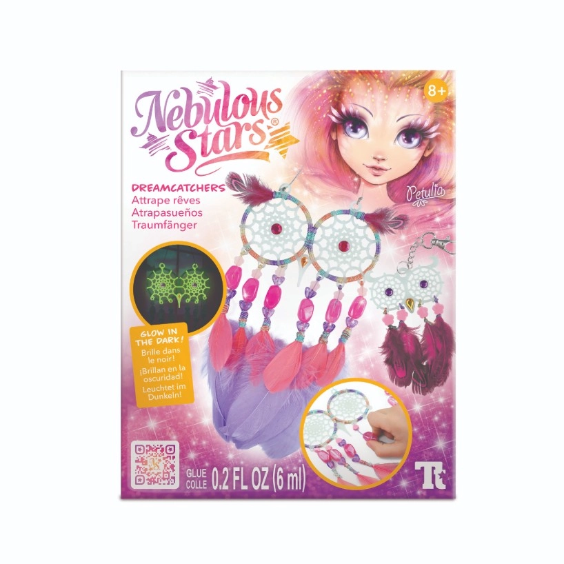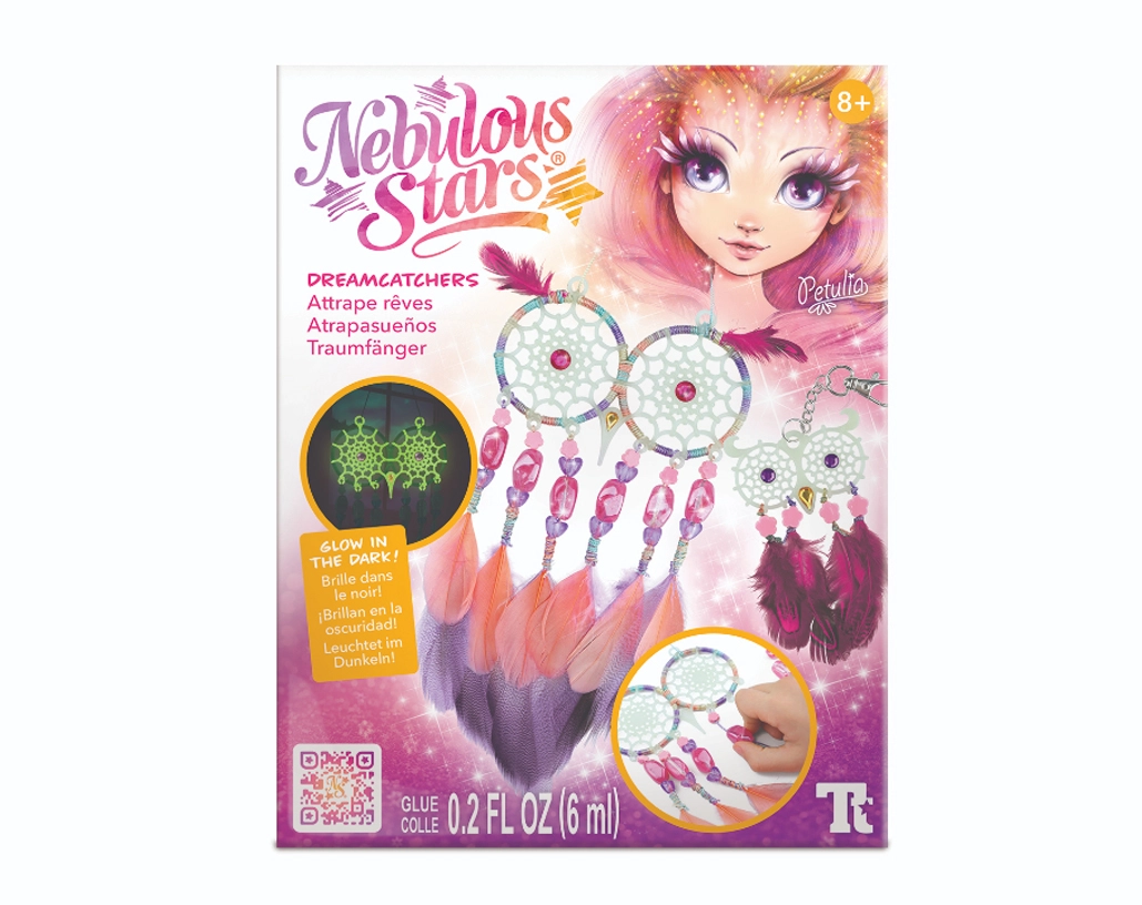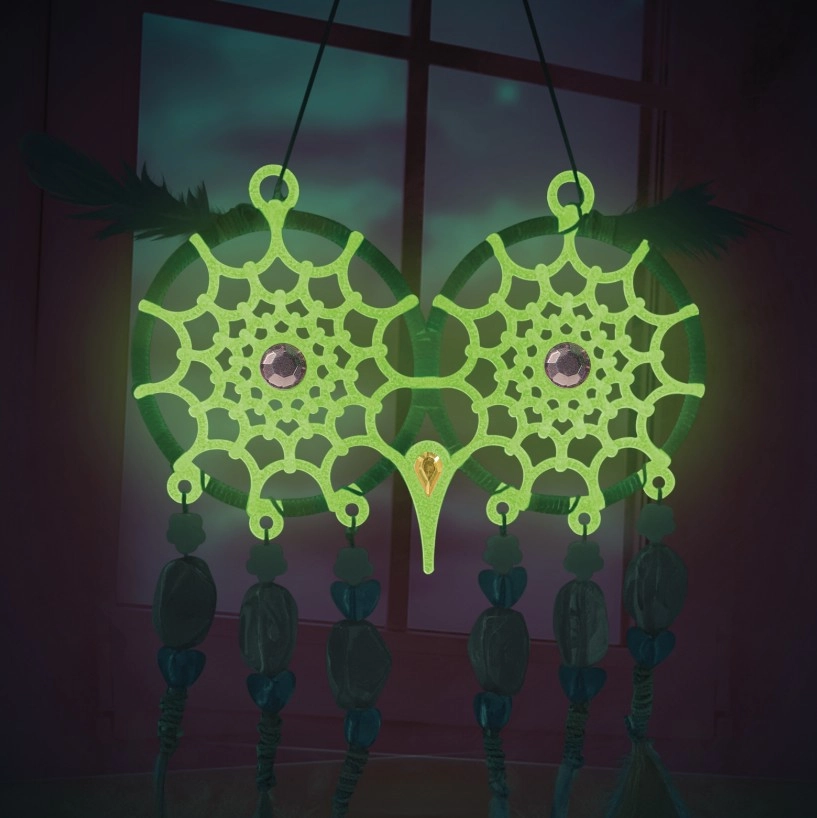 Entdecke die magische Welt des Bastelns und ein ruhiges Einschlafen. Das Nebulous Stars Set enthält alles für die Herstellung von zwei Eulen-Traumfängern, deren Augen und Fäden im Dunkeln leuchten. Die Dekoration kommt neben dem Bett oder im Kinderzimmer besonders schön zur Geltung und verleiht ihm einen zarten, leuchtenden Zauber.