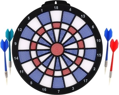 Genießen Sie klassischen Dartspaß in einer sicheren Ausführung für Kinder und Erwachsene. Diese Kunststoff-Dartscheibe mit farblich abgesetzten Feldern und gut lesbarer Sektor-Markierung bietet eine gelungene Kombination aus Spiel und Präzisionstraining. Vier leichte Pfeile mit auswechselbaren Kunststoffspitzen sind schonend für Scheibe und Umgebung.