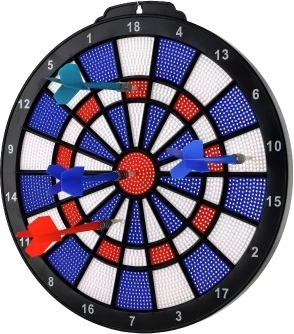 Mit einem Durchmesser von 28 cm ist die Scheibe ideal für den Heimgebrauch – sie nimmt wenig Platz ein und bietet dennoch eine ausreichend große Spielfläche. Veranstalten Sie Ihr eigenes Turnier und versuchen Sie, den Höchstwurf 180 zu erzielen oder den Bullseye-Treffer für 50 Punkte zu landen.