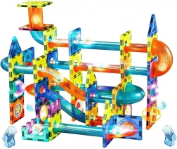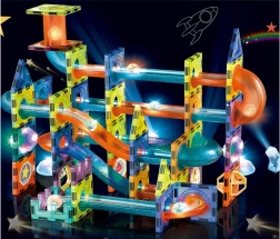 Diese leuchtende Kugelbahn vereint magnetische Blöcke und transparente Elemente mit LED-Beleuchtung, sodass die Kugelfahrten auch im Dunkeln beeindruckend sind. Kinder können Rampen, Schleifen und Hindernisse bauen und beliebig kombinieren. Starke Magnete und Verriegelungen ermöglichen stabile 3D-Konstruktionen, durch die die Kugeln ohne Halt hindurchsausen.
