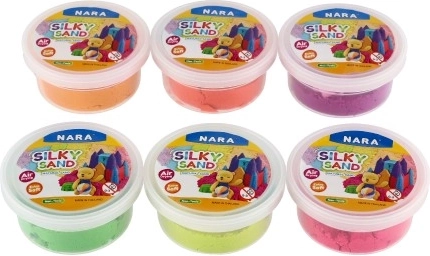 Der Sand Nara Silky Sand ist perfekt für kreative Spiele und die Entwicklung motorischer Fähigkeiten. Kinder können unzählige Formen modellieren und formen, was ihre Fantasie und Kreativität fördert. Jedes Set enthält sechs verschiedene Sandfarben und zwei Ausstechformen für noch mehr Spaß.