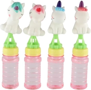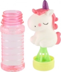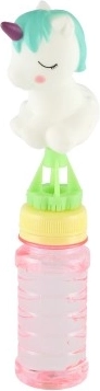 Die Einhornfigur im Deckel macht aus einer gewöhnlichen Seifenblasenflasche ein Lieblingsspielzeug. Verspielte Details und Farben begeistern auf den ersten Blick.