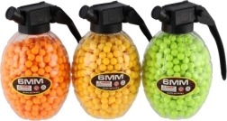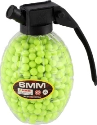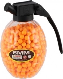 Ergänzen Sie Ihre Ausrüstung um ein praktisches Kugel-Set in einer originellen Dose in Granatenform. Darin finden Sie 800 Gummikugeln mit 6 mm, die dank der auffälligen Farben leicht zu finden und zu kontrollieren sind. Dank des komfortablen Verschlusses füllen Sie das Magazin schnell und ohne Unordnung nach.