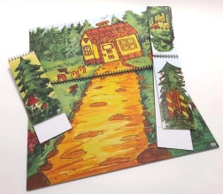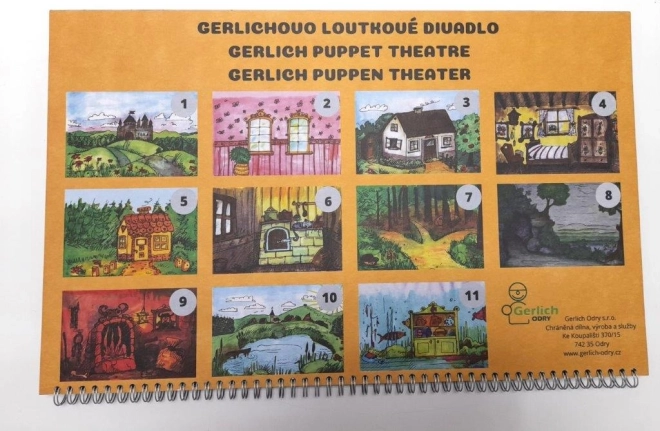 Enthalten sind 11 doppelseitige bzw. paarige Szenen in Ringbindung mit Boden: im Schloss / vor dem Schloss, vor dem Häuschen / im Häuschen, Lebkuchenhaus / im Lebkuchenhaus, im Wald / an der Höhle, in der Hölle / am Teich, im Teich. Die Puppen umfassen die königliche Familie, Helden und Märchenwesen – ideal für klassische tschechische Märchen.