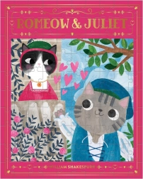Puzzle Katzen Romeow & Juliet bietet ein bezauberndes Porträt von Romeo und Julia mit Katzenmotiv. Puzzle mit 100 Teilen in einer Buchstil-Box mit goldenen Details und Magnetverschluss.