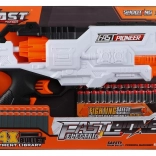 Sicheres weiches Geschoss. Weiches Geschoss mit runder Spitze, aus Schaumstoff gefertigt und recycelbar. Große Schussweite. Magazinkapazität: 7 Schuss. 24 Schuss im Lieferumfang. Schussreichweite: 10–15 m.