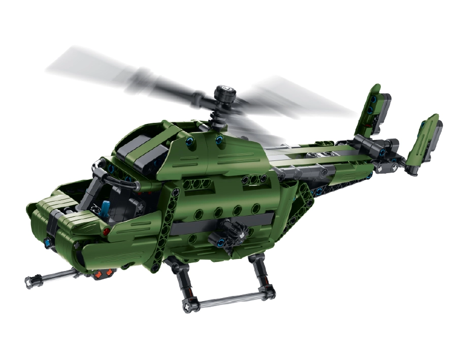 Das Modell bietet ein 2-in-1-System – aus einem Set bauen Sie zwei unterschiedliche Hubschraubervarianten. Mechanische Elemente sorgen für Bewegung und funktionale Teile, sodass Sie nicht nur den Bau, sondern auch das anschließende Spielen genießen. Eine detaillierte Anleitung erleichtert die Montage Schritt für Schritt.
