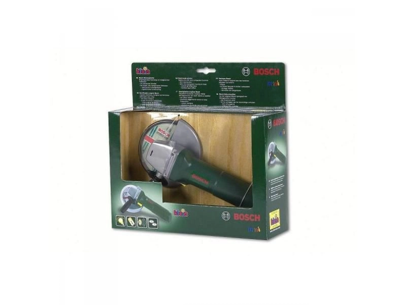 Der Schleifer ist stabil und mit Liebe zum Detail gefertigt, hat ein dunkelgrünes Gehäuse mit grauen Elementen und rotem BOSCH-Logo. Für noch mehr Spaß ist er mit einer drehenden Scheibe, einem Lichteffekt, der Funken imitiert, und einem Soundeffekt eines laufenden Schleifers ausgestattet. Das ideale Spielzeug für Kinder, die Erwachsene nachahmen und das Arbeiten mit Werkzeugen sicher ausprobieren möchten.