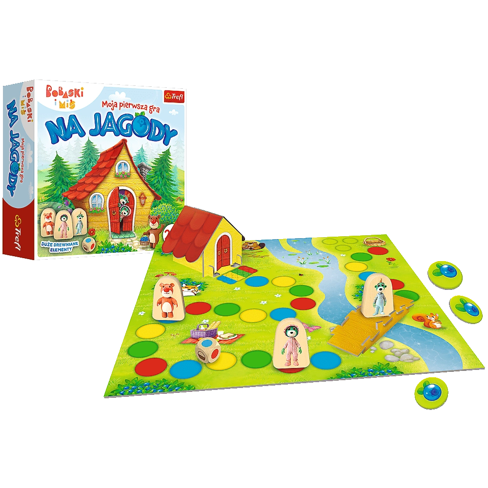 Begib dich mit der Treflik-Familie zum Bärenhäuschen und sammle so viele Heidelbeeren wie möglich, bevor ihr das Ziel erreicht. Das Spiel ist für die Jüngsten konzipiert – große Holzfiguren und Würfel liegen gut in kleinen Händen und die räumliche Spielfläche regt die Vorstellungskraft an. Dank des kooperativen Spielprinzips lernen Kinder Zusammenarbeit, das Einhalten von Regeln und üben das Zählen.