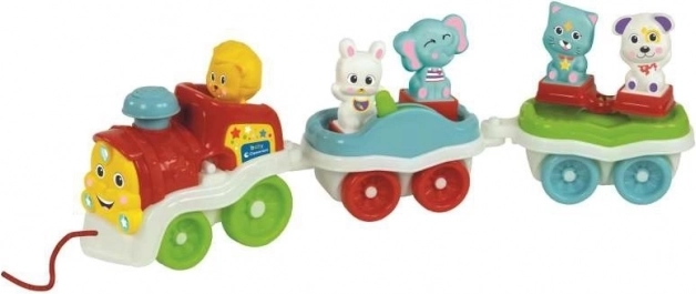 Der interaktive Tierzug wurde entwickelt, um zu unterhalten und gleichzeitig die Schlüsselkompetenzen von Kindern im Alter von 12–36 Monaten zu fördern. Durch Drücken des Schornsteins werden umfangreiche Audioinhalte aktiviert – Sätze, Tiergeräusche, Reime und Lieder auf Polnisch – die dem Kind helfen, die Welt besser zu verstehen und seinen Wortschatz zu erweitern.