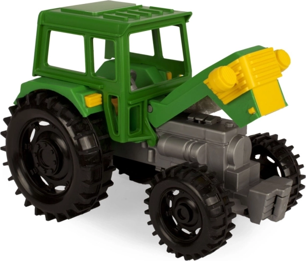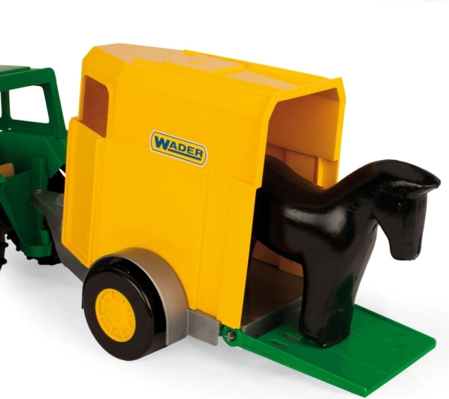 Traktor aus der Serie Color Cars mit Pferdeanhänger. Das Fahrzeug zeichnet sich durch realistische Ausführung, solide Verarbeitung, leichte und robuste Konstruktion sowie einfache Bedienung aus. Zum Set gehört ein öffnender Anhänger mit klappbarer Rampe und eine Pferdefigur. Der Traktor verfügt über bewegliche Elemente zur Spielbereicherung, zum Beispiel eine anhebbare Kabine und Motorhaube sowie eine drehbare Vorderachse. Das Spielen mit dem Traktor und dem Anhänger erweitert das Wissen der Kleinsten über die Welt um sie herum, unsere Kinder lernen, wie Tiere transportiert werden, und bringen ihre Tierfiguren schnell durchs Haus oder nehmen sie mit auf einen Ausflug in den Park oder in den Garten.