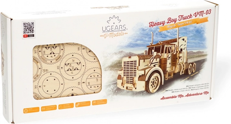 Der UGEARS Heavy Boy VM-03 ist ein realistisches Modell eines amerikanischen Sattelschleppers aus hochwertigem Sperrholz, das Fans von Mechanik, Modellbau und Design begeistert. Dank des ausgeklügelten aufziehbaren Gummiantriebs kann das Modell selbstständig fahren – bis über 4 Meter mit einer Aufziehung. Die detaillierte Mechanik ermöglicht das Beobachten der Motorarbeit inklusive der Bewegung der Kolben.