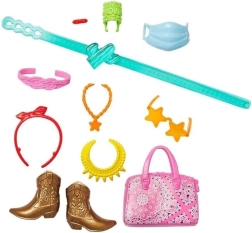 Entdecken Sie thematische Accessoires für BARBIE-Puppen, die kreatives Spiel und das Erfinden origineller Geschichten fördern. Das Set „Western Fashion – Minigeschichte“ bringt Stil und Spaß in jedem Detail – von modischen Stücken bis zu unterhaltsamen Requisiten. Dank der Variabilität können Sie die Accessoires leicht mit anderen Kollektionen kombinieren und neue Spiel-Szenarien kreieren.