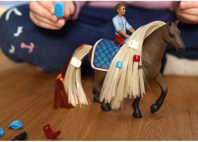 Die Reiterfigur mit beweglichen Gliedmaßen, der Sattel mit weicher Sattelunterlage und die Trense ermöglichen einen natürlichen Sitz und authentische Reitszenen.