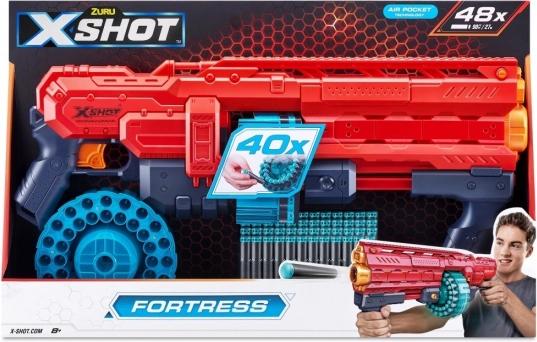 Werden Sie zum Sieger jeder Schlacht mit dem revolutionären X-Shot Excel Fortress. Dieses perfekte Spielgerät ist mit einem geräumigen Magazin ausgestattet, das bis zu 40 Pfeile fasst, und wurde für einfache Handhabung entwickelt. Das sich automatisch drehende Magazin und zwei Ebenen zum Umschalten ermöglichen längeres Spielen ohne häufiges Nachladen.