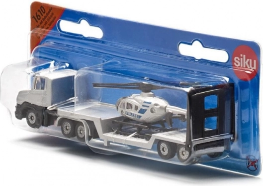 Einzigartiger Anhänger aus Metall- und Kunststoffteilen, der für den Transport des SIKU-Polizeihubschraubers bestimmt ist.