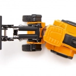 Der Tieflader mit Auffahrrampen ermöglicht das leichte „Auffahren“ des JCB-Radladers, sodass Kinder und Sammler authentische Transportszenarien nachspielen können.