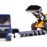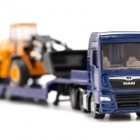 Dieses detailreiche Set kombiniert eine blaue MAN TGX-Zugmaschine mit Tieflader und einen JCB-Baustellenradlader. Die langlebige Metallkonstruktion (Die-Cast) mit präzisen Prints und frei drehenden Rädern bietet authentisches Aussehen und Funktionalität. Dank der beweglichen Ladeschaufel des Radladers und der Auffahrrampen des Anhängers lassen sich Transporte von Baumaschinen leicht inszenieren.