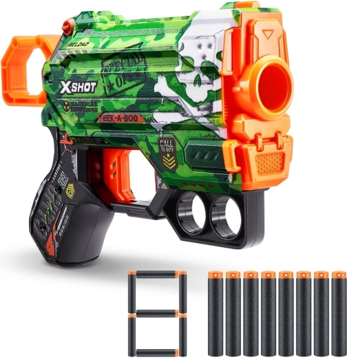 Genießen Sie dynamischen Spielspaß mit dem ZURU X-Shot Skins Menace, der kompakte Maße mit hoher Leistung verbindet. Die leichte Konstruktion und der ergonomische Griff sorgen für komfortable Bedienung auch bei längeren Gefechten, während das intuitive Nachladen Ausfallzeiten zwischen den Schüssen minimiert.