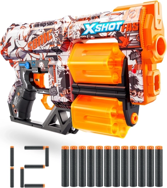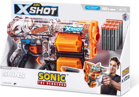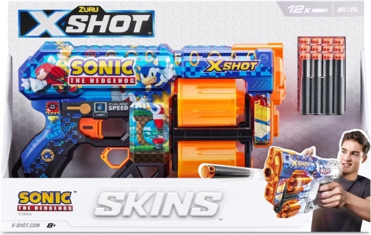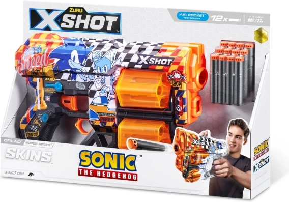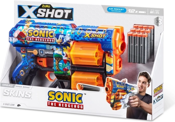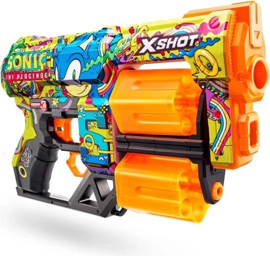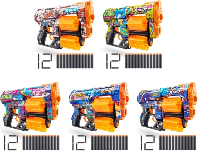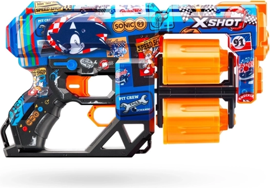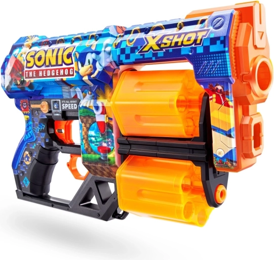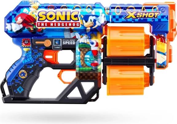 Stürzen Sie sich ins Geschehen mit den Kultfiguren Sonic, Tails und Knuckles dank der einzigartigen X-Shot Sonic-Skins.