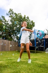 - Einfache Handhabung – eintauchen, schwingen und in Sekundenschnelle Seifenblasen genießen.
