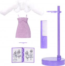 Die Puppe begeistert mit vollem, gewelltem Haar zum Kämmen, einem glitzernden Kleid, einer weichen weißen „Fell“-Jacke und violetten High-Heels. Im Set findest du außerdem einen Kamm, einen Ständer und ein kleines illustriertes Heft zur Inspiration für Geschichten und Modeentwürfe.